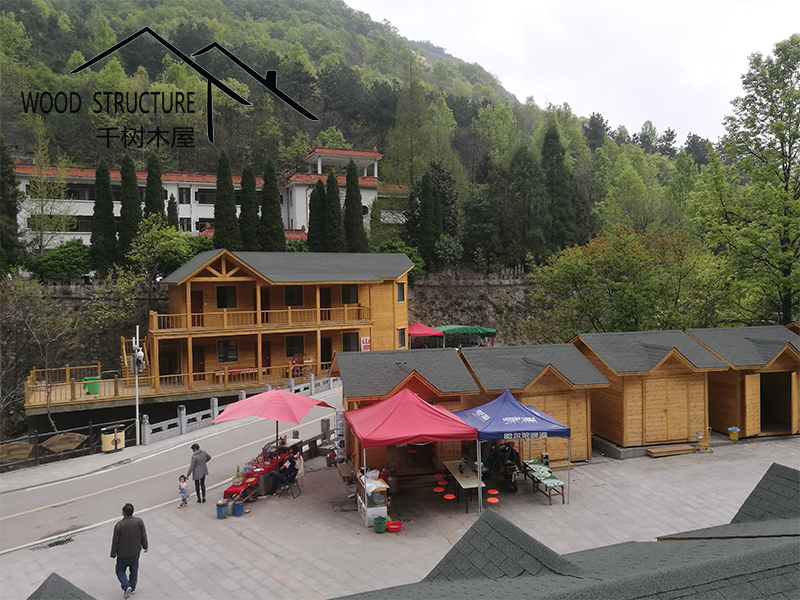 風景名勝區(qū)的復式辦公樓木屋和20個售賣小木屋由河南千樹木業(yè)有限公司(以下簡稱千樹木屋)設計并建造。