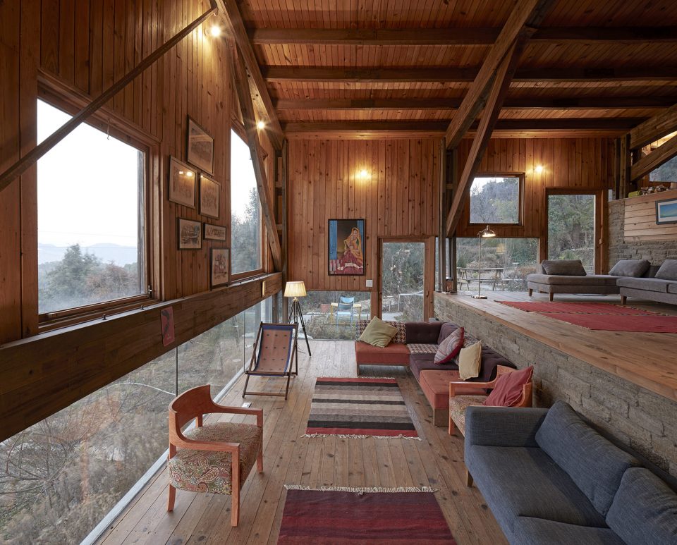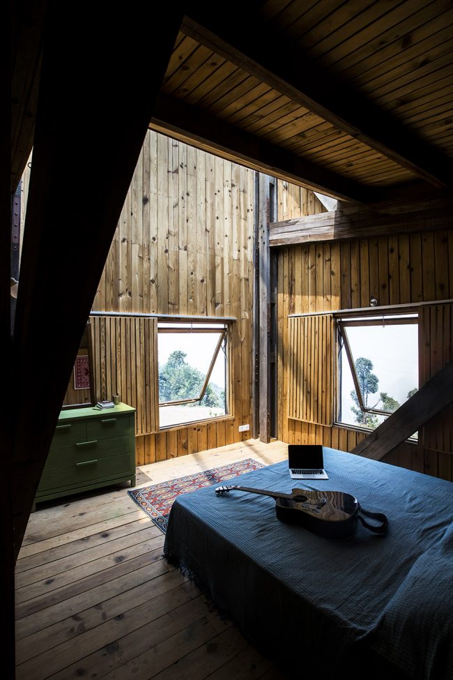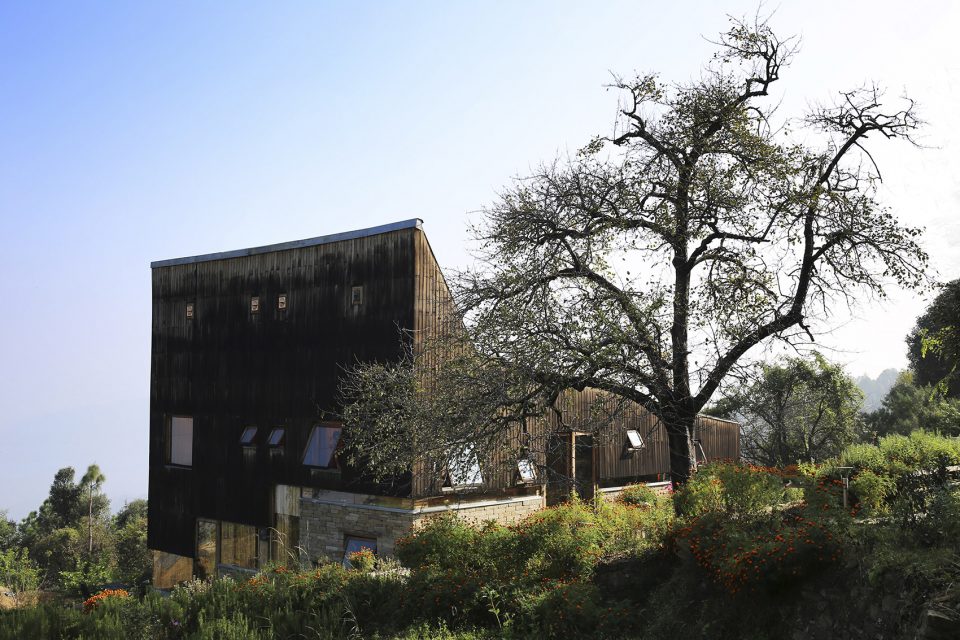 這所房子坐落在海拔2000米的Nanital地區(qū)的Satkol村,周圍只有傳統(tǒng)的鄉(xiāng)村房屋,反映出當(dāng)?shù)剞r(nóng)民的簡(jiǎn)樸生活。它是為自用而建的度假屋。