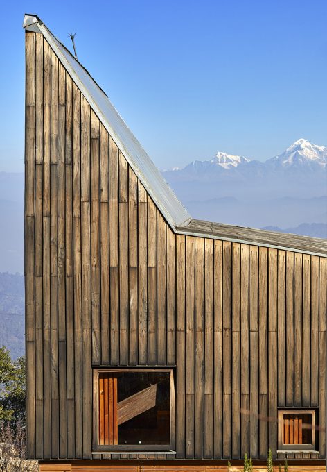 這座房子的設(shè)計(jì)考慮到了其周圍喜馬拉雅山脈白雪皚皚的自然景色,同時(shí)深深扎根于現(xiàn)有的未被破壞的梯田。這兩個(gè)壓倒性的景觀使得建筑被放置在梯田的最低級(jí),與周圍的大環(huán)境相融合。