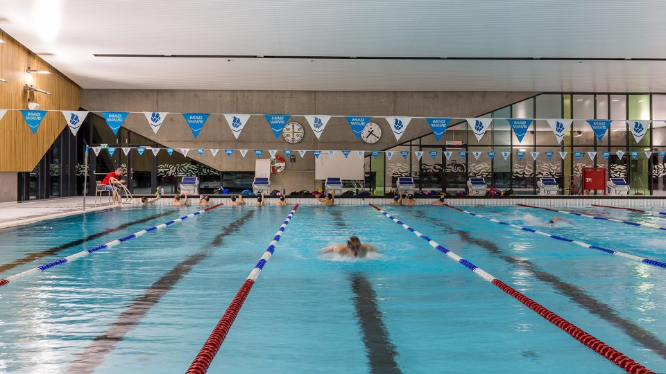 ▼主入口、接待處、更衣室和游泳池皆位于建筑的主樓層