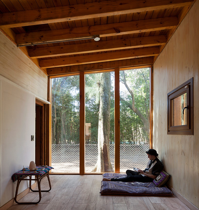 主臥的傾斜屋頂朝庭院呈開放狀。