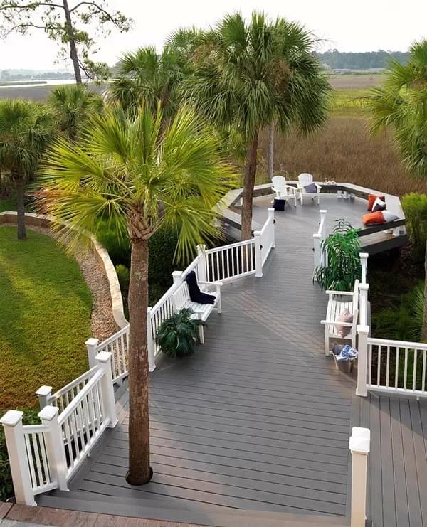 當(dāng)然了,木平臺(tái)甲板的設(shè)計(jì)風(fēng)格任由設(shè)計(jì)師發(fā)揮,可以通過添加樹木或綠廊,甲板的設(shè)計(jì)有很多種方式,下面這些案例你可以根據(jù)自己口味來重新設(shè)計(jì),現(xiàn)在開始吧,一起看看!