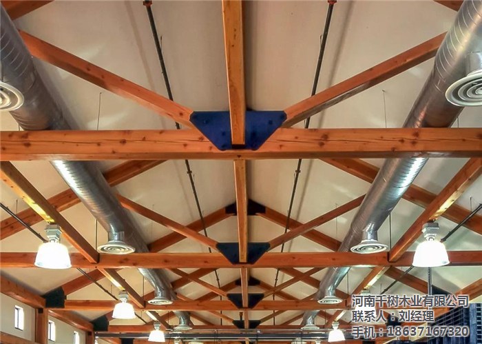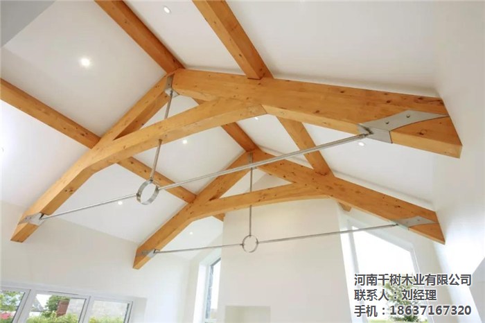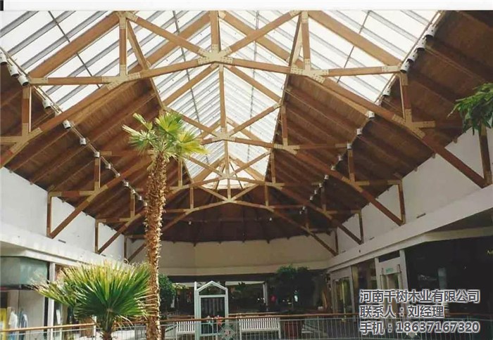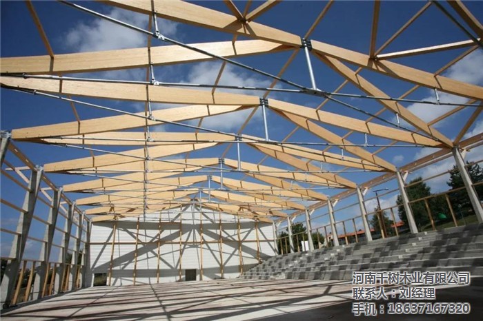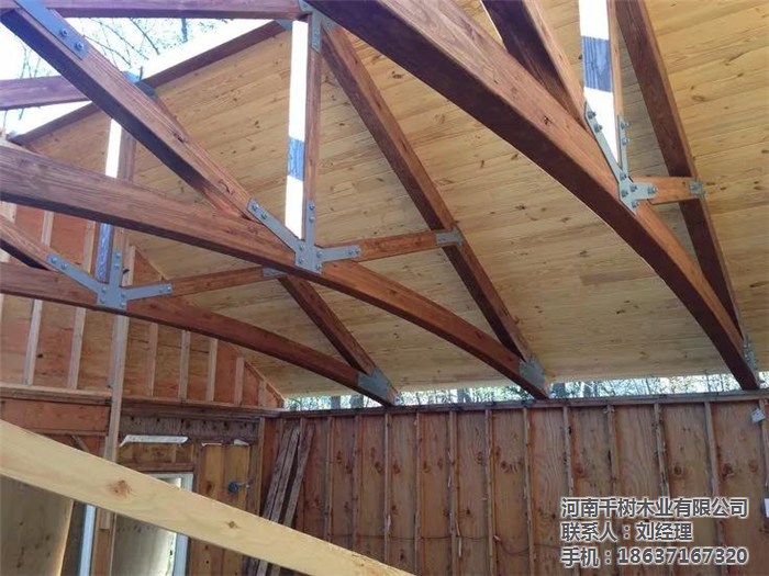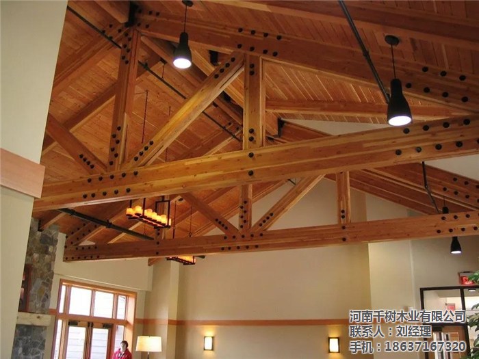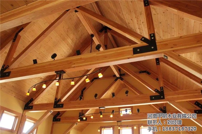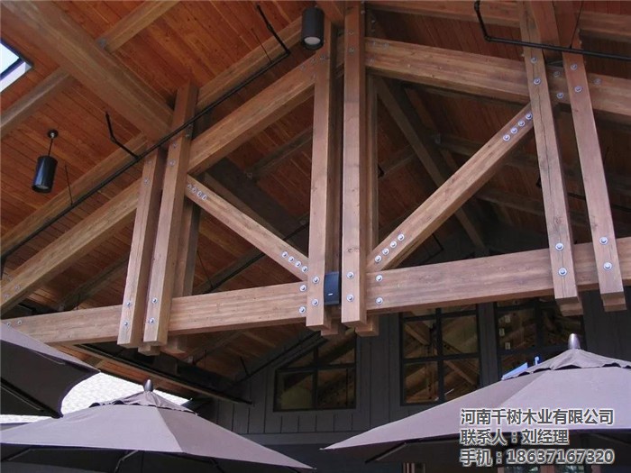 河南景區(qū)木屋桁架的外形變化多樣,可以根據(jù)所采用的屋面材料、桁架跨度、建筑造型、制造條件和桁架的受力性能等因素來(lái)確定。木桁架的外形通常有三角形、梯形及多邊形等三種,當(dāng)采用膠合木結(jié)構(gòu)時(shí),還可用拱形。