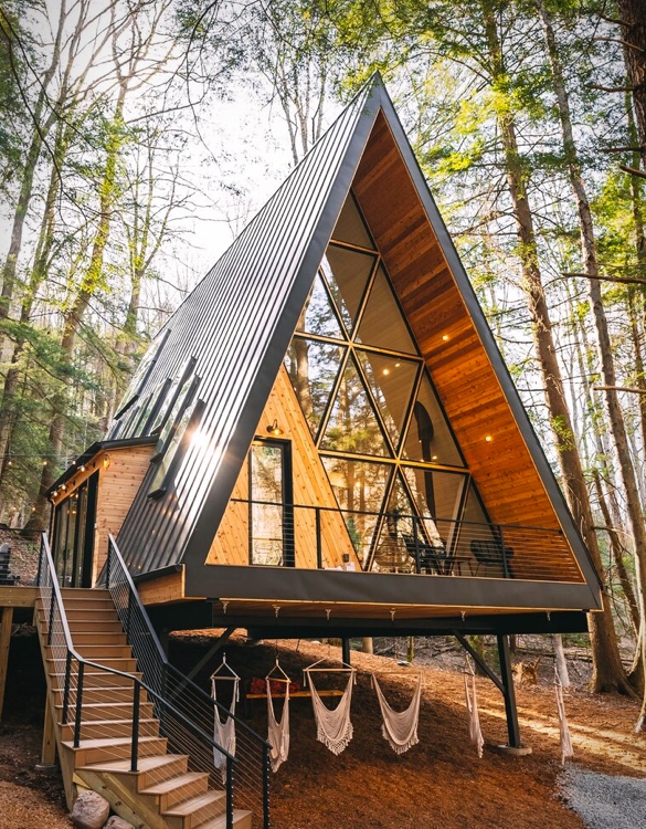 裝配式三角形木屋民宿:采用先進(jìn)的裝配技術(shù),將三角形木屋模塊化設(shè)計(jì),方便運(yùn)輸和組裝。內(nèi)部設(shè)施齊全,提供舒適的住宿體驗(yàn)。